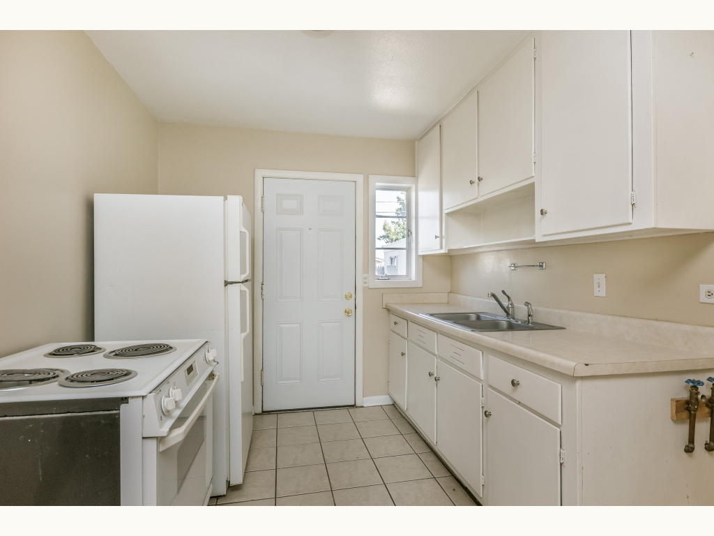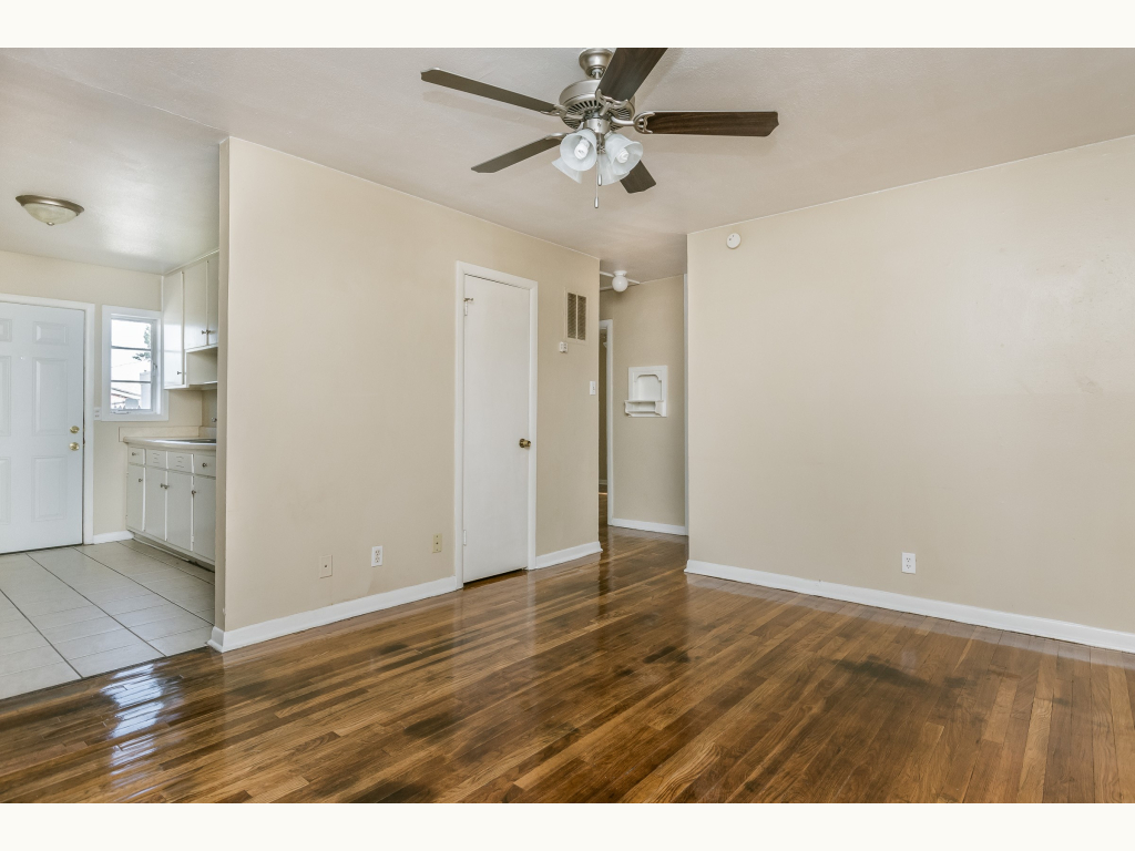 Nice remodeled duplex on corner lot with off street parking, refinished original hardwood floors, ceramic tile kitchen and bath, new ceiling fans, stove, & washer/dryer hookups. Privacy fenced back yard with detached storage building.