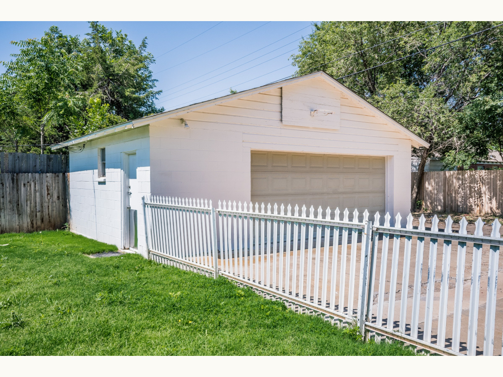 Has privacy fenced backyard with a 2 car detached garage in the back.